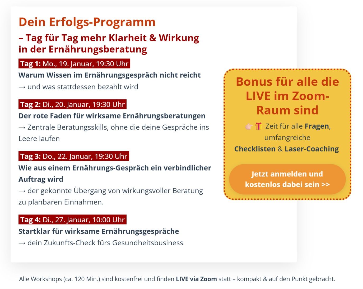 4 LIVE-Trainings via Zoom für kompetente Gesprächsführung und wirksame Umsetzung in der Ernährungsberatung