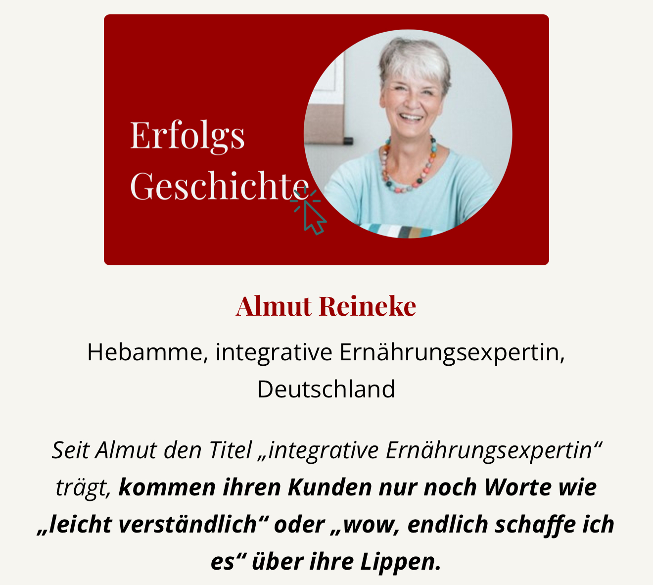 Meine Jahrzehnte lange Erfahrungen und mein Knowhow aus über 8000 Ernährungsberatungen teile ich mit dir, um deinen Arbeitsalltag stressfrei und effizient zu gestalten. Es ist mir ein Anliegen dein Unternehmertum & deine Lebensfreude zu fördern.